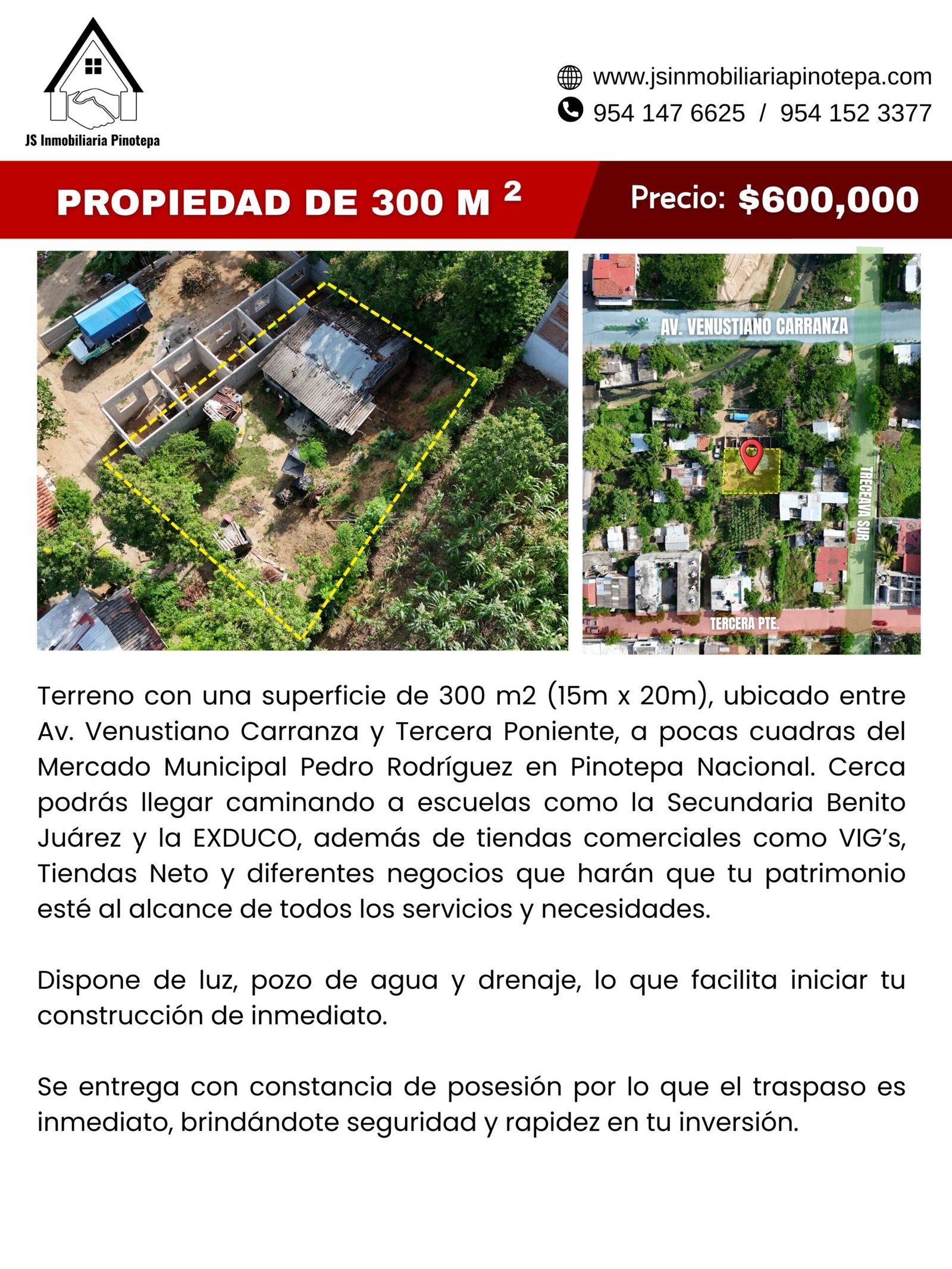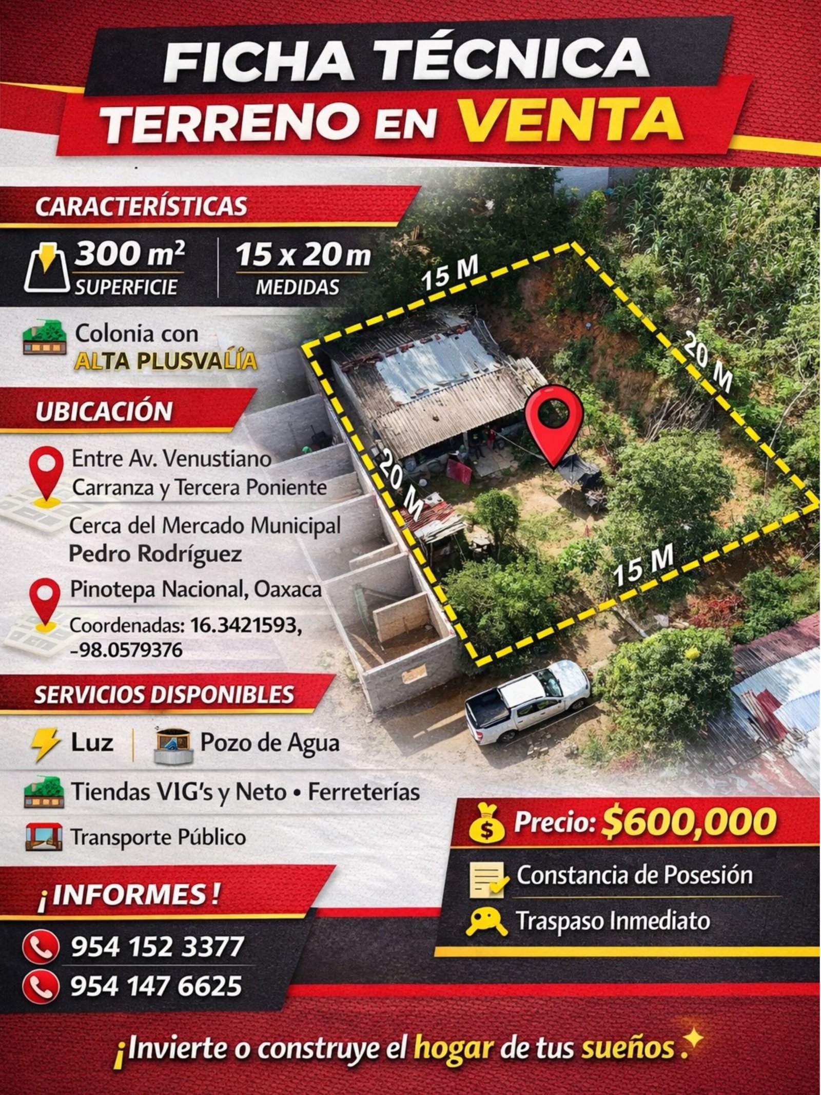 𝐓𝐄𝐑𝐑𝐄𝐍𝐎 𝐄𝐍 𝐕𝐄𝐍𝐓𝐀 cerca del Mercado Municipal Pedro Rodríguez, en Pinotepa Nacional